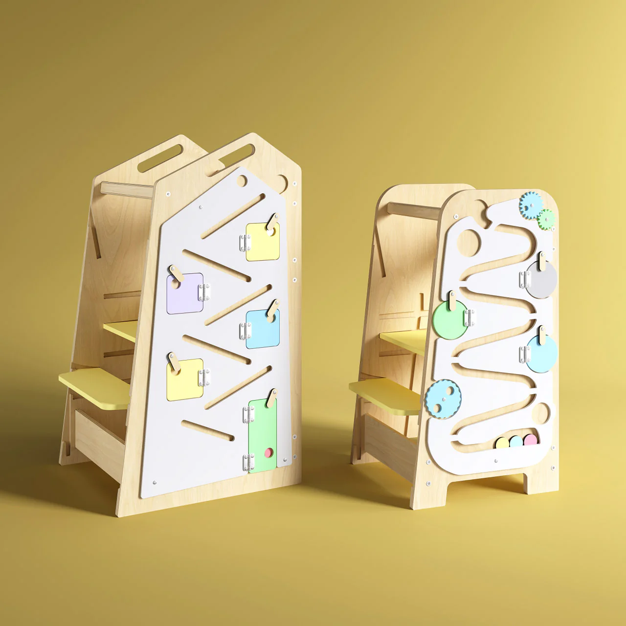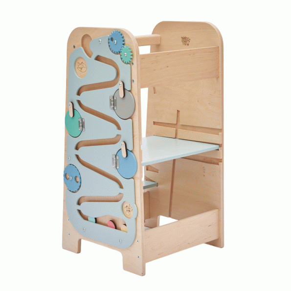In questo modo la torre di apprendimento diventa quasi una palestra di vita, un modo per indurre il bambino ad essere autonomo fin dai primi anni di età, sperimentando il mondo degli adulti in modo equilibrato. I bambini che usano questa torre imparano anche a concentrarsi giocando, senza trascurare lo sviluppo della capacità di concentrazione.